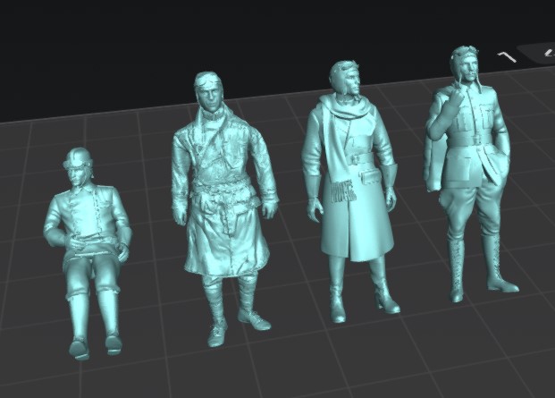 4 figuras de resina (tres paradas y una sentada)