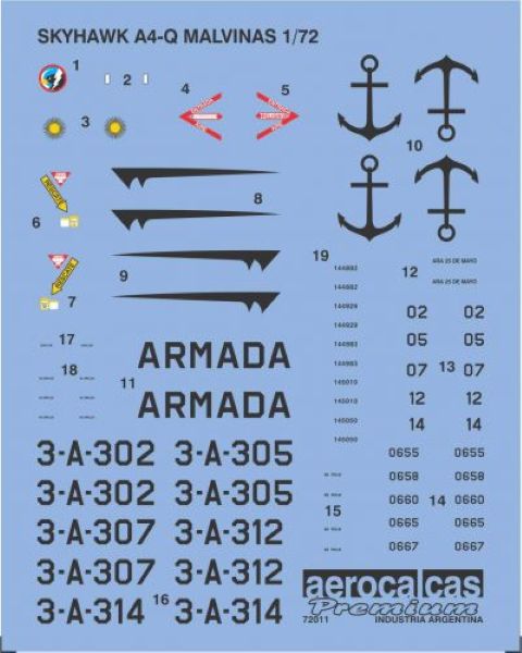 Incluye los numerales de los aviones participantes en la Guerra de Malvinas