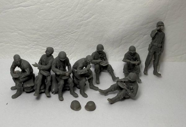 Incluye 8 figuras, un banco y 2 cascos, todo por separado. (Sin pegar).